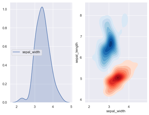 sns.kdeplot(setosa.sepal_width, shade=True, shade_lowest=False,ax=ax[0])