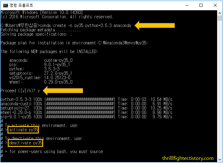 py35라는 이름으로 python 3.5.3 환경을 만든다.