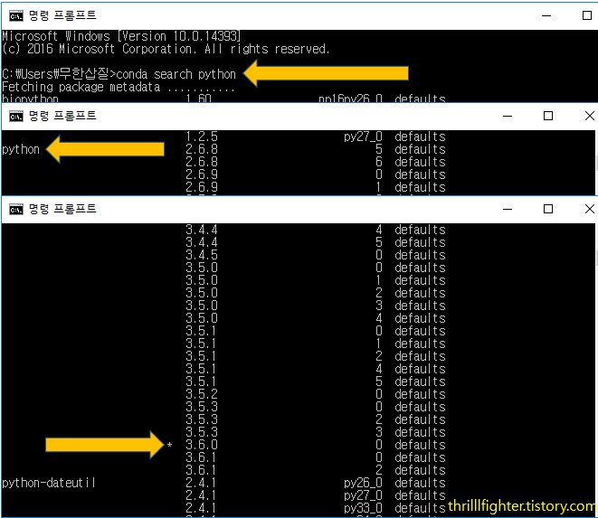 위 명령은 아나콘다의 기본 파이썬 버전을 아에 python 3.5.3 버전으로 바꾸는 명령이다.