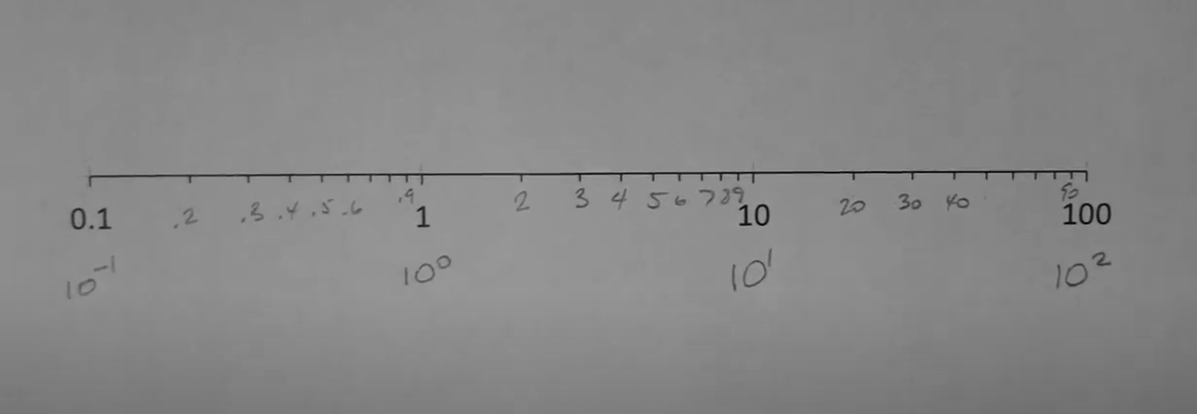 > 밑을 10으로 하는 로그는 10제곱 수 단위로 작동한다. (cf.상용로그가 아닌 자연로그를 취하는 경우도 봄)