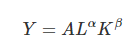 이런 경우와 비슷한 게 콥더글라스함수(Cobb-Douglas function)을 사용하게 되는 경우인데, 콥더글라스 생산함수는 아래와 같이 생겼다.